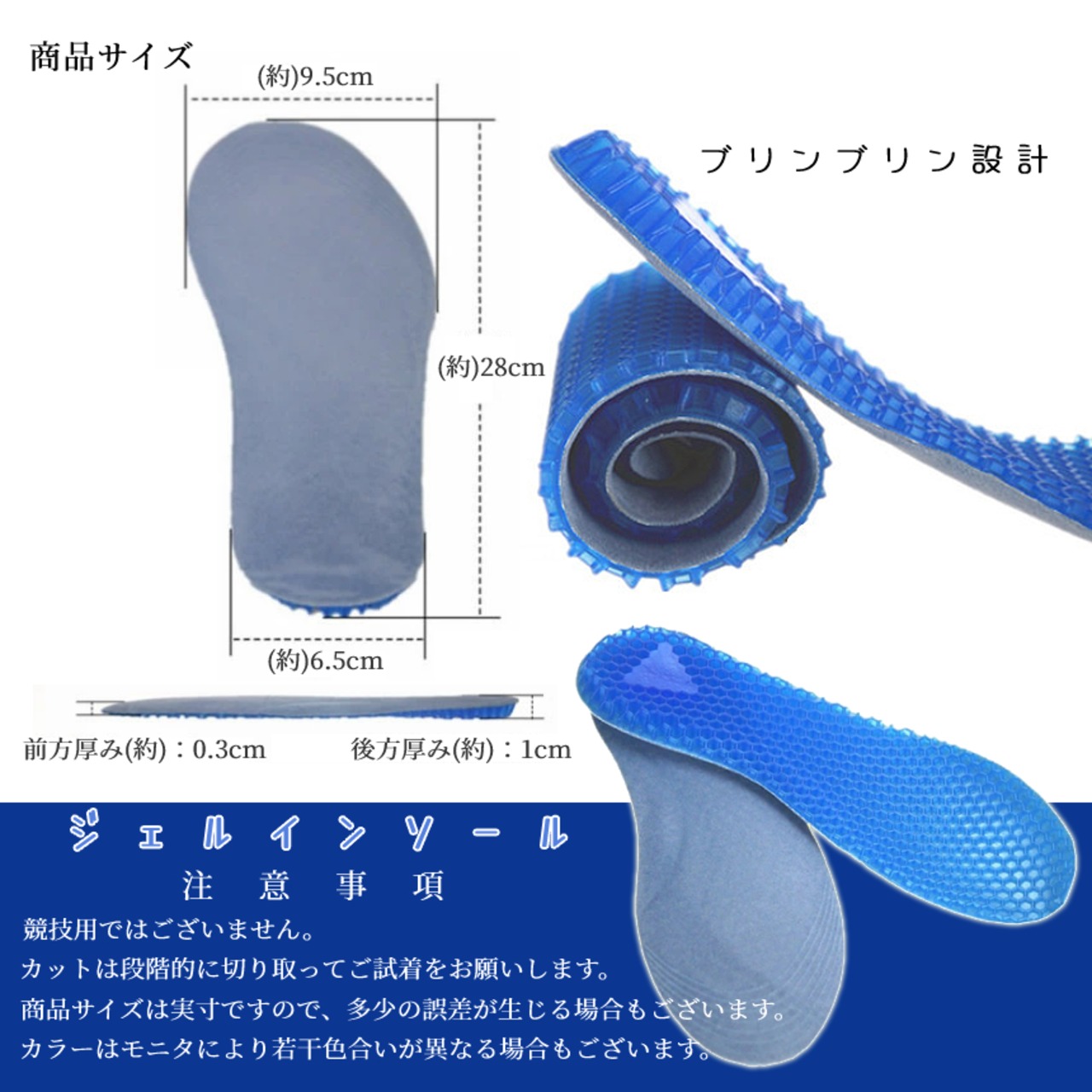 衝撃吸収 インソール 男性用 メンズ クッション ゲル 中敷き 通気性 抜群 ジェル ハニカム構造 25.5-27.5cm JSOLE