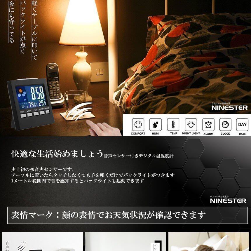 簡単操作 高性能 カラー液晶 デジタル湿度計 温度計室内 目覚まし時計 卓上 DEJIONDO