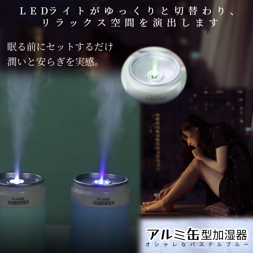 缶型加湿器 パステルブルー 卓上加湿器 静音 給電式 USB給電 LEDライト付き 加湿器 缶型 かわいい コンパクト 面白グッズ KANKASITSU