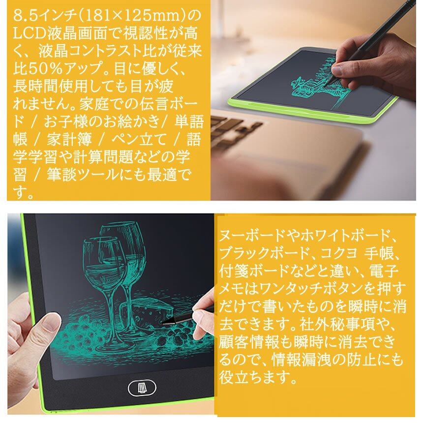 パッド 電子メモ帳 電子パッド 電子メモ 作戦ボード 落書き ロック機能搭載 単語帳 筆談ボード 書いて消せるボード 8.5インチ 黒 DENSIPA
