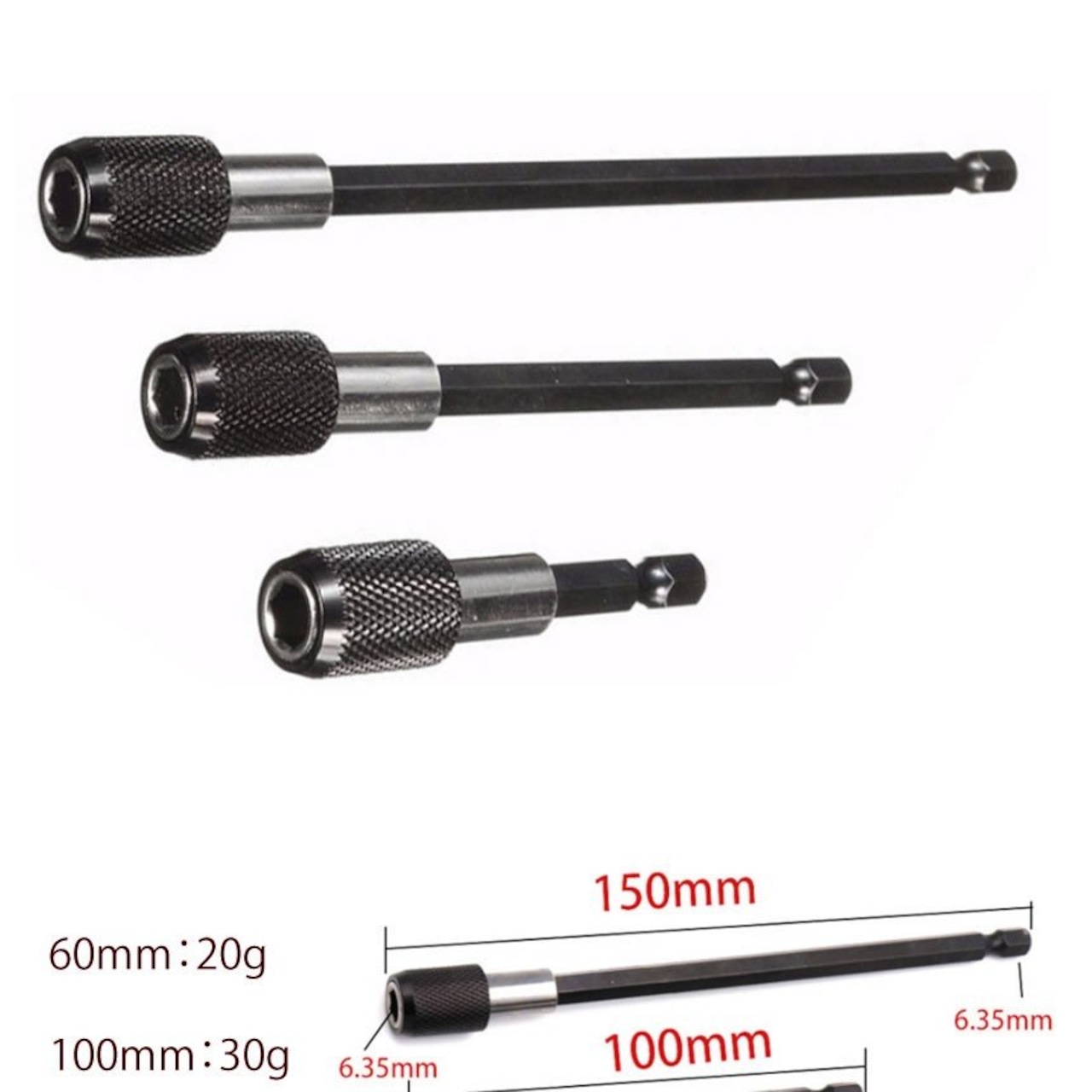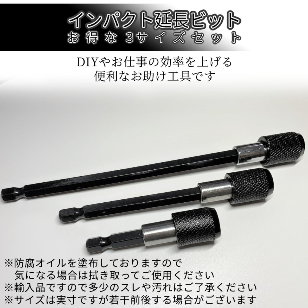 ドリル延長棒 ドリルビット 3点セット ビット延長 延長ロッド インパクト用 ドライバー延長 DIY DIY工具 工具 木材 棚 大工 作業 頑丈 ENDORI