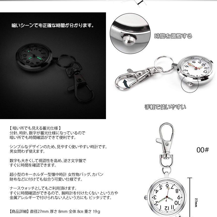 ナースウォッチ ホワイト 時計 懐中時計 逆さ時計 キーウォッチ キーホルダー ナスカン シンプル リュック バッグ ポケット ランドセル NASWATCH-B