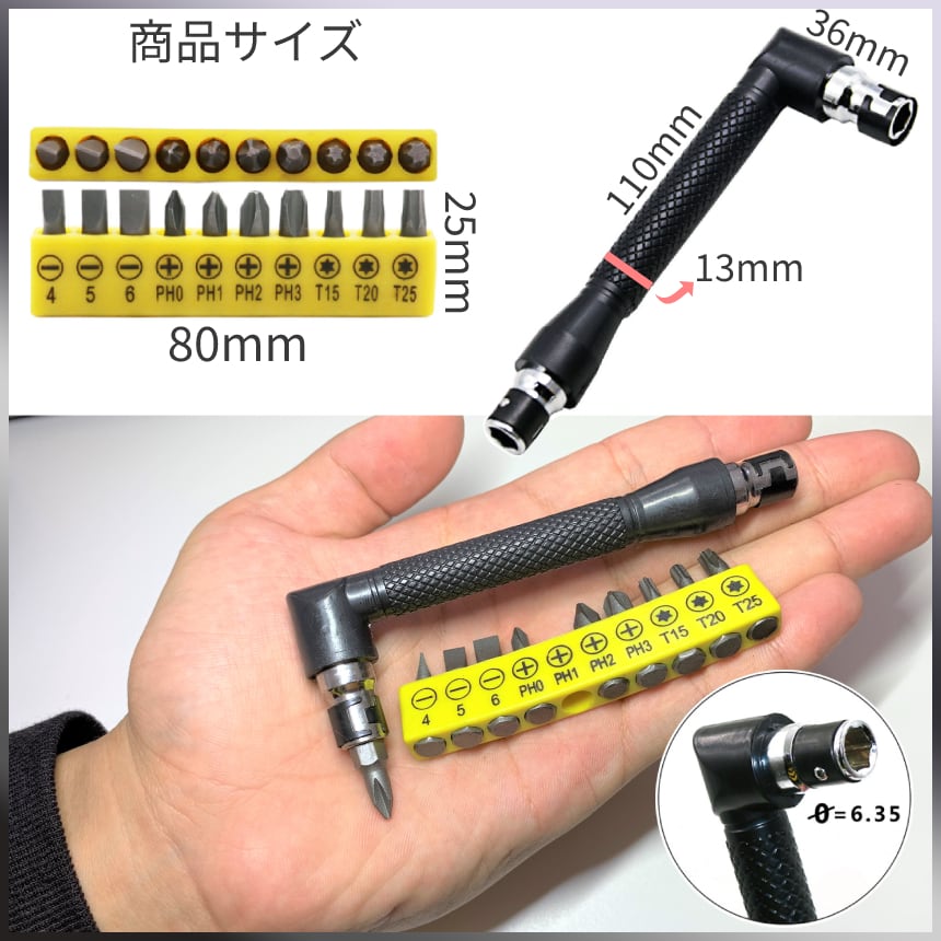 L字ドライバー ビット10本付属 プラスドライバー マイナスドライバー レンチ スパナ ミニドライバー DIY 工具 ドライバ?セット 自転車修理 バイク修理 L字 ミニ工具 ELDORA