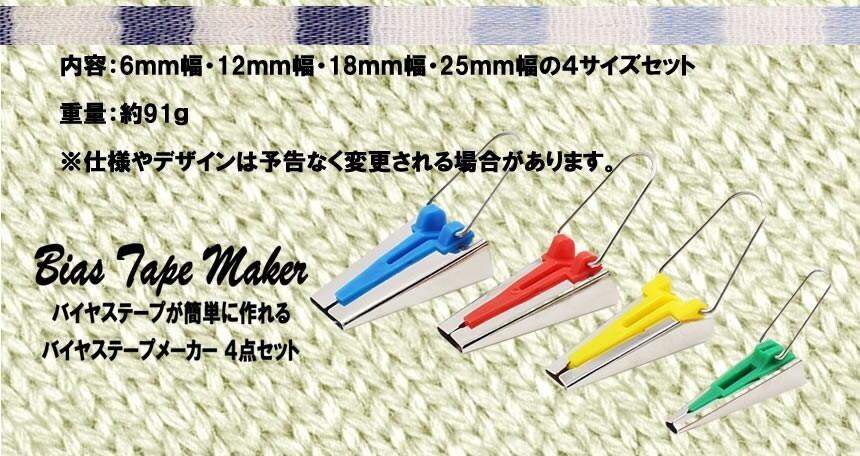 バイアス バイヤス テープメーカー BIAS バイアスメーカー 両折バイアス 家庭用ミシン アタッチメント 4サイズセット BIASMAKER
