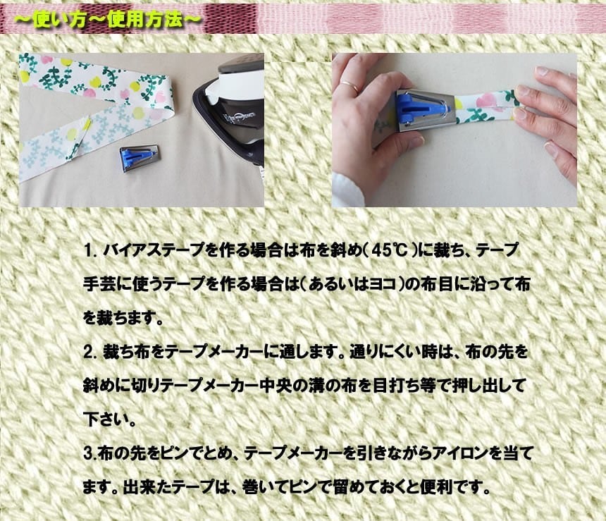 両折タイプのバイアステープが簡単に作れる便利なテープメーカーです。