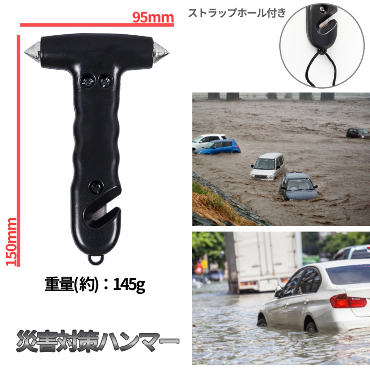 緊急用 車載 ハンマー 2個セット 小型 脱出ハンマー 重厚感ハンマー 災害用 車 閉じ込め 災害 緊急 ハンマー シートベルト カッター 2-THANMA