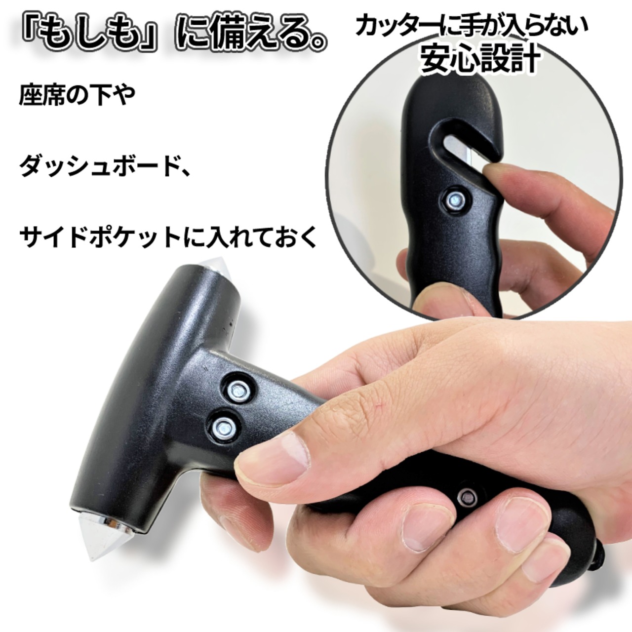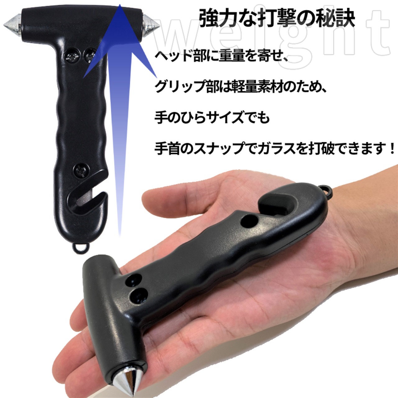 ヘッド部は窓割りハンマー、グリップ部にはシートベルトカッター付きの2way仕様。