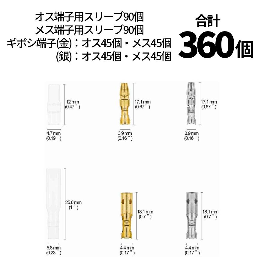 ギボシ端子 360個セット 絶縁スリーブ カバー付き オス メス セット 配線接続 汎用 防水 自動車 GIBOSET