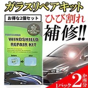 フロントガラスリペア 2個セット ひび割れ修理 リペア キット カー用品 ひび割れ補修 フロントガラス 2ヶ所分 飛び石 傷 修理 穴埋め 応急処置 2-HIBIRI