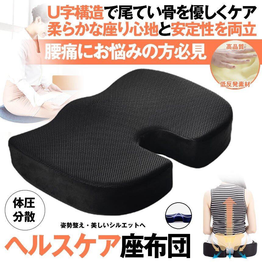 低反発クッション 座布団 イス 体圧 分散 椅子 いす 健康 クッション ブラック 腰痛 U型 姿勢 矯正 デスクワーク 負担 軽減 低反発座布団 TEIZABU