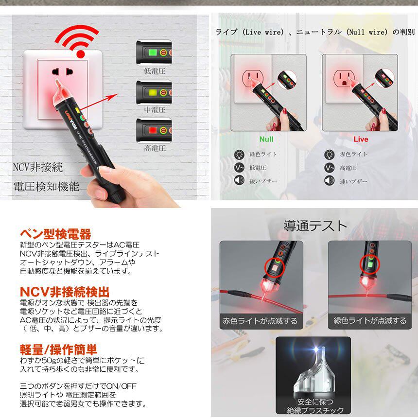 新型のペン型電圧テスターはAC電圧、NCV非接触電圧検出、