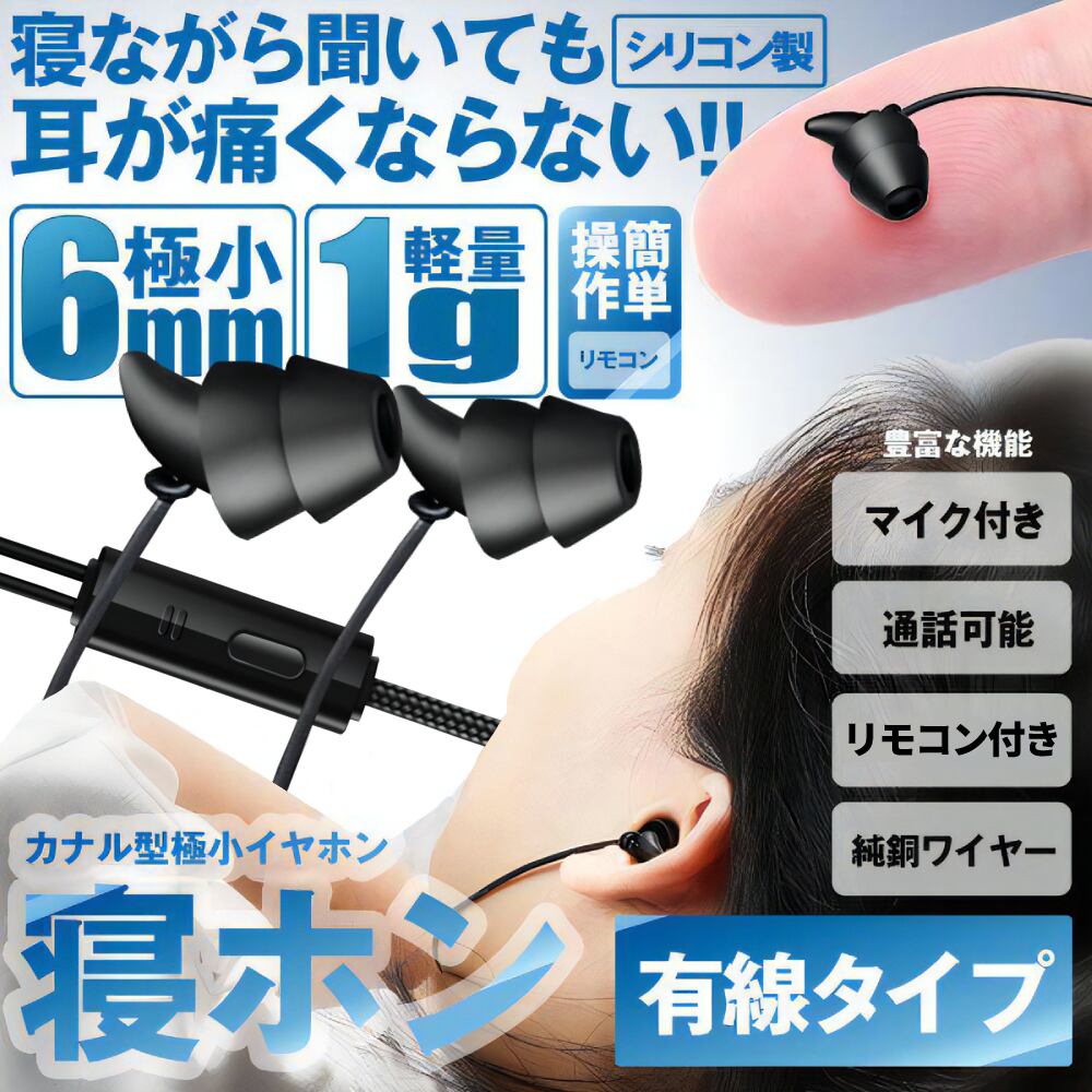 耳 痛くない スリーピング イヤホン 小型 軽量 カナル型 有線 3.5mm 寝ながら 痛くない 寝ホン 快適 リモコン マイク 操作 簡単 動画 音楽 通話 シリコン やわらかい サイズ 就寝 睡眠 横向き NEYAHON