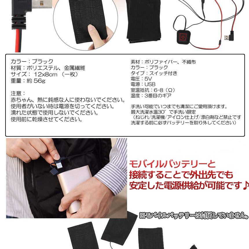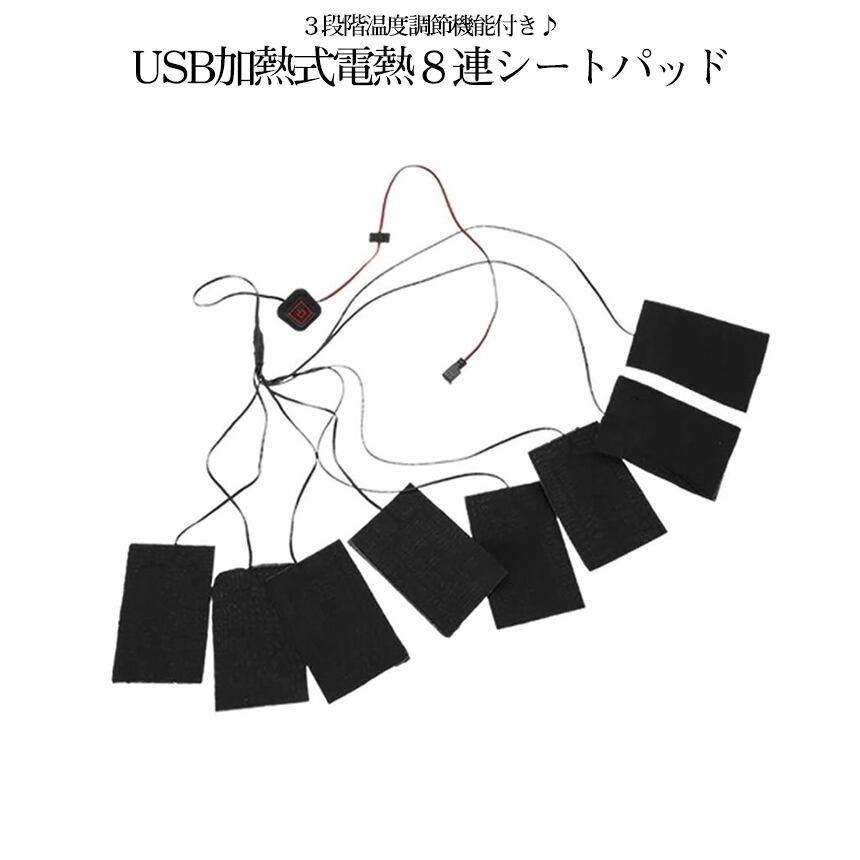 電熱 8連 シートパッド USB 電熱パッド 暖かパッド ジャケットに装着可能 加熱 暖房 冬 保温 カイロ 暖かい 防寒 パッド 服 装着 8NETUPA
