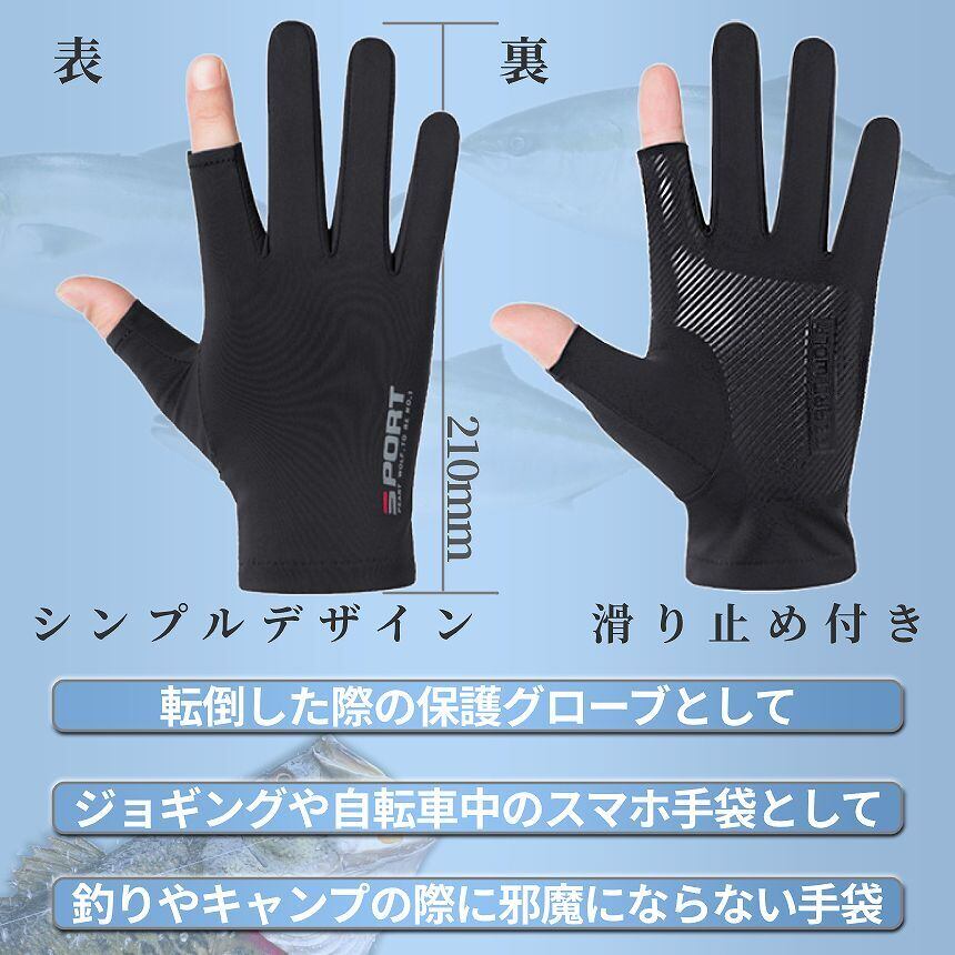フィッシング グローブ 左右 セット 手袋 滑り止め 釣り 指 2本出し タイプ スマホ 操作 可能 水洗い フィット 伸縮 サイクリング ロードバイク 便利 NIHOGURO