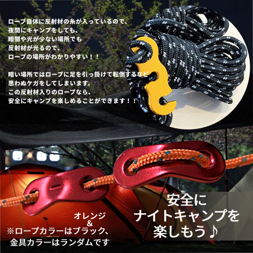 ガイド ロープ 4本x2 セット 黒 4本 オレンジ 4本 アウトドア キャンプ ガイロープ キャンプギア 4mm 長さ 4m GAIROSET