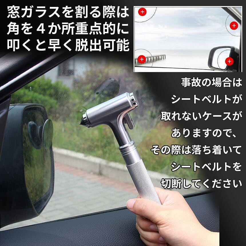 上部は窓割りハンマー、サイドにはシートベルトカッター付きの2way仕様。
