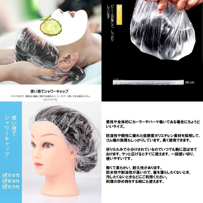シャワーキャップ ヘアキャップ 100枚 セット 使い捨て カラーリング キャップ シャワー ヘアー カラー パーマ 髪染め 髪 毛 ヘア PE製 ゴム 伸縮 透明 100SYAWA