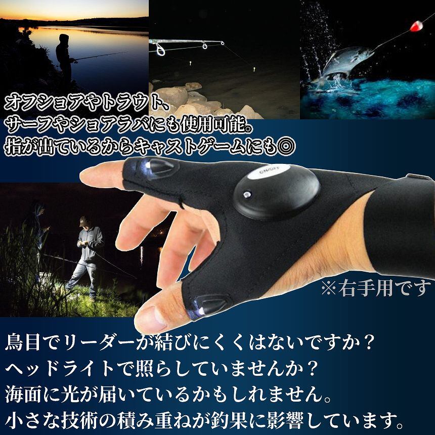 夜釣り LED ライト グローブ 釣り フィッシング 手袋 夜 暗い 指先 フィンガー 手元 明るい 電池 便利 簡単 装着 操作 持ち運び 話題 人差し指 親指 YOZURANIGHT