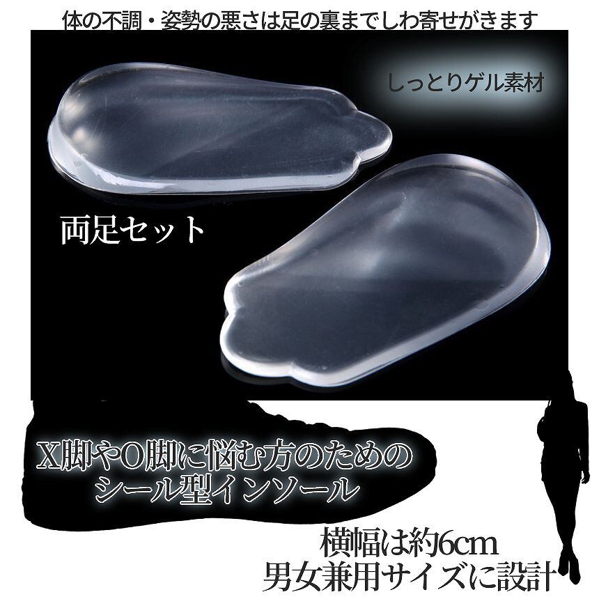 X脚 O脚 矯正用 クリア インソール 4枚 左右 2足 セット シリコン ゲル シール クッション 中敷き 靴 くつ スニーカー 革靴 パンプス ヒール 男女 兼用 2-XOSOUL