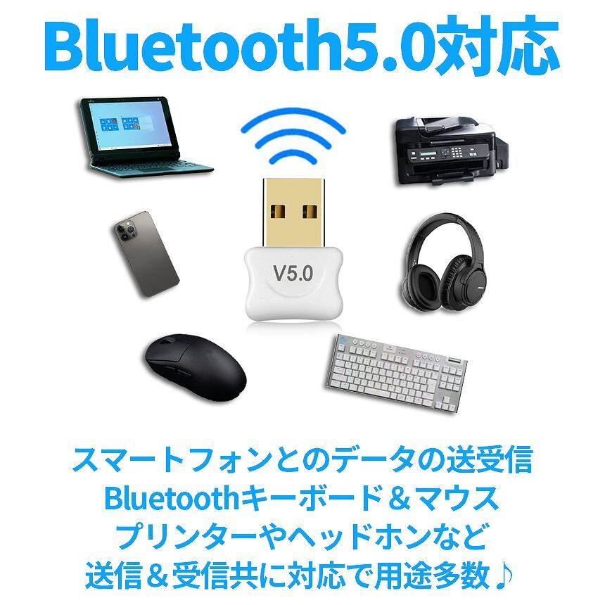 Bluetooth 5.0 アダプタ ホワイト USB 無線 ドングル 2個 セット 小型 ブルートゥース ワイヤレス ノート PC パソコン iPad マウス キーボード 2-MINIBT-WH