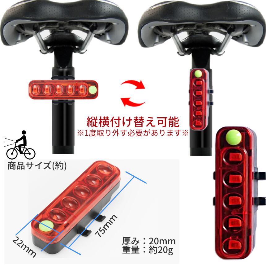 自転車 LED バック ライト USB 充電 点灯 点滅 工具 不要 サドルライト バックライト テールライト 警告灯 後続 後続車 歩行者 簡単 取り付け 操作SINJITERA
