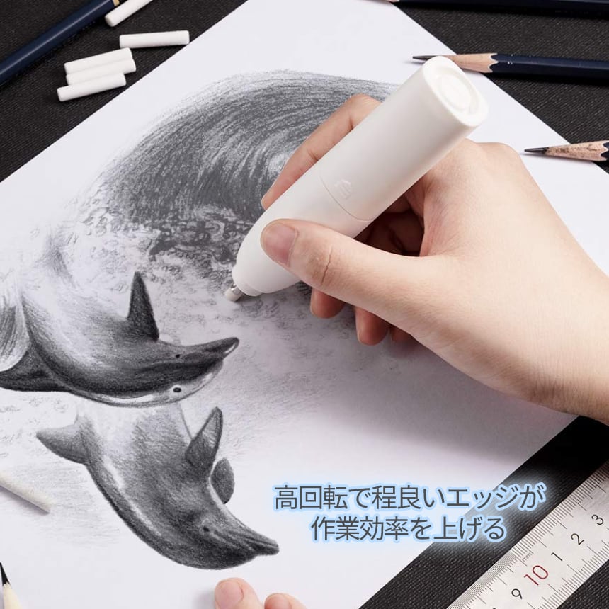 電動 消しゴム 高速 回転 字消し 電池 静音 よく消える 替え芯 10本 付き 学校 デッサン 絵画 製図 鉛筆 けしごむ ペン型 時短 文房具 電動消しゴム DENKESIN