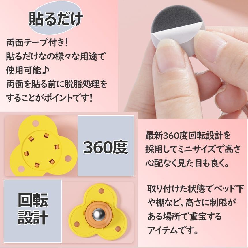貼るだけ ボールキャスター 4個 セット 粘着 両面 テープ 360度 回転 ミニ コロコロ ボール ベアリング 収納 ケース ボックス 家具 移動 取り付け 簡単 COLOLO