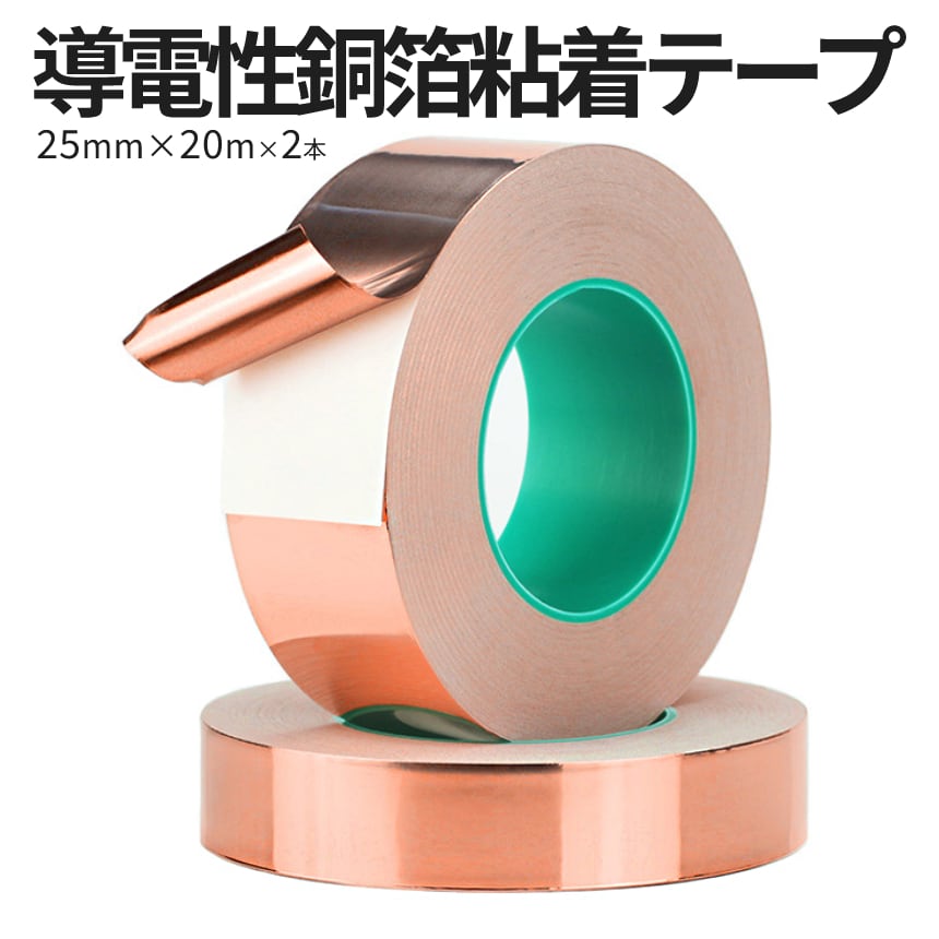 銅テープ 導電性 銅箔 粘着 テープ 25mm × 20m 2本 セット 導電 耐熱 金属テープ 静電気 除去 EMI 対策 電磁波 シールド アース取り 車 配線 整備 2-COPPATAPE