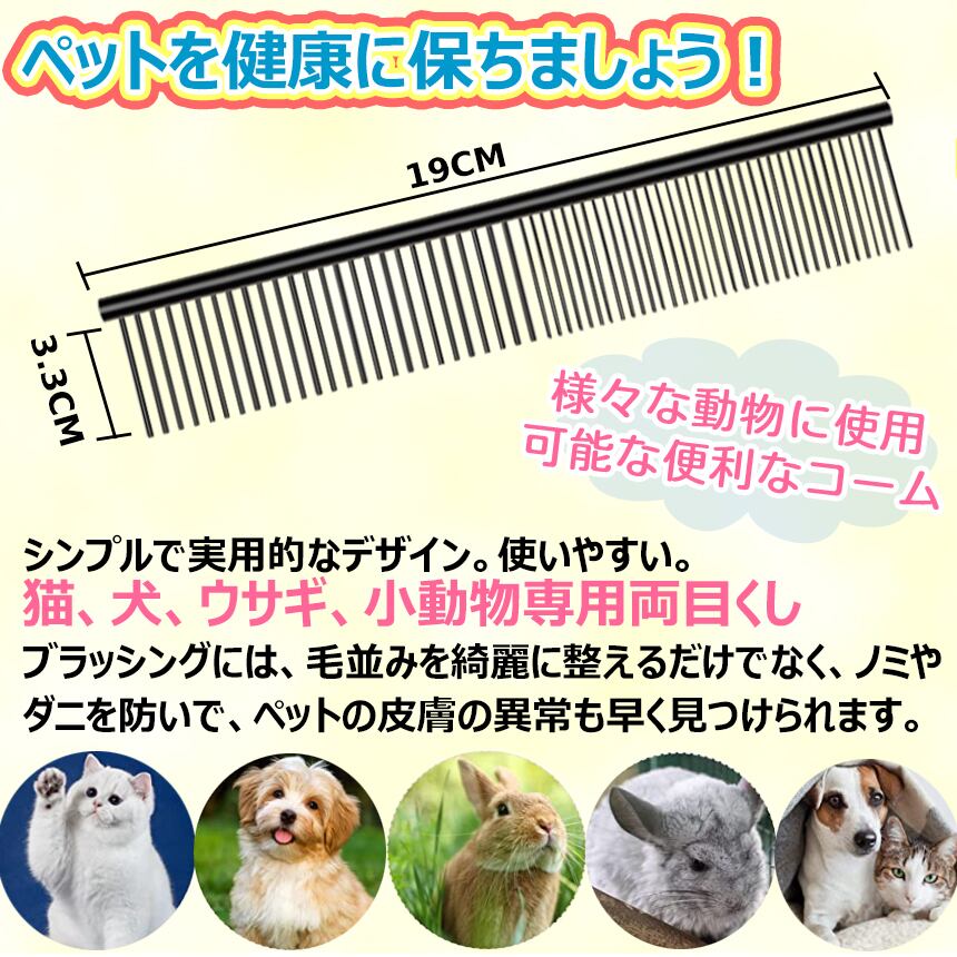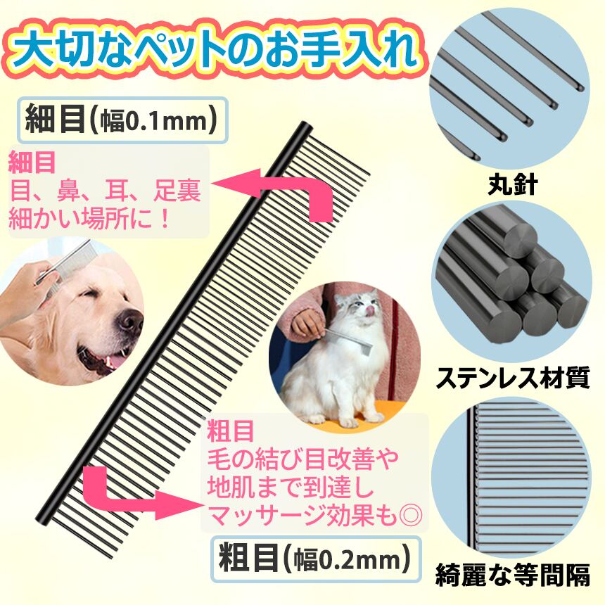 ペット コーム 両目 くし ブラック 2本 セット 細目 粗目 抜け毛 毛 ほぐす 犬 猫 グルーミング トリミング ステンレス ブラシ 手入れ ペット用品 2-NECORM-BK