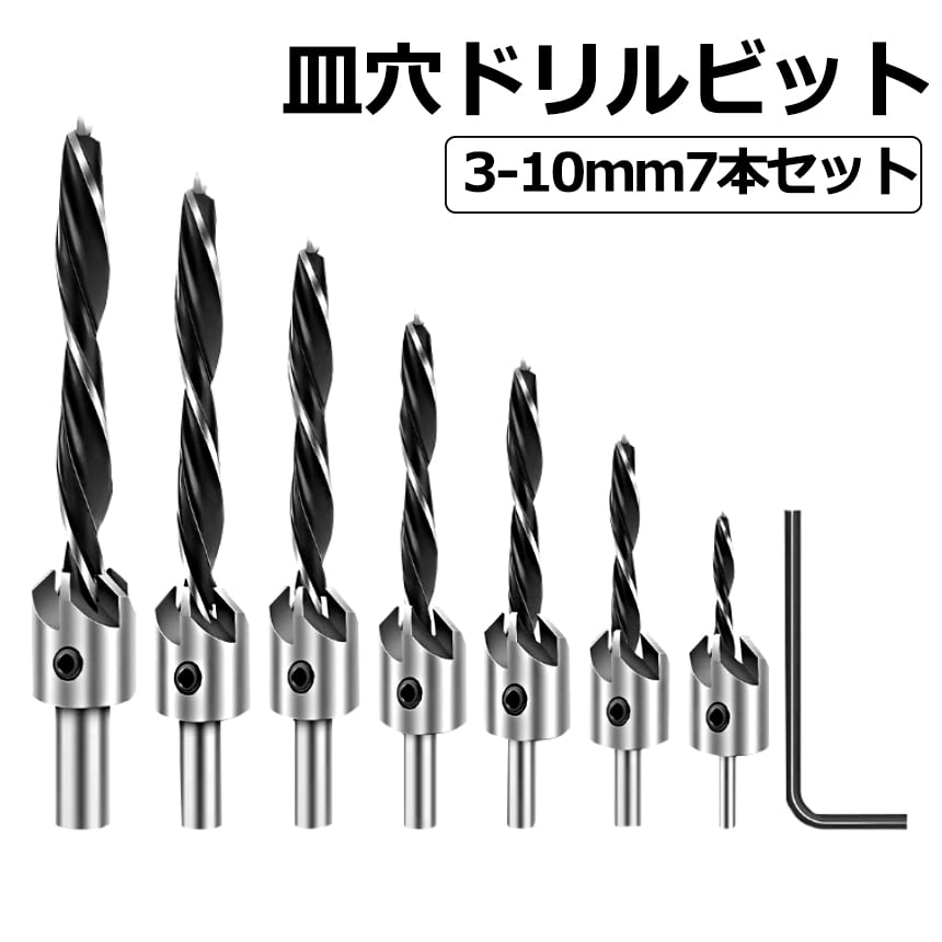 皿穴 ドリル ビット 7本 セット 面取り カッター バリ 取り 皿取り 錐 ドリルビット 下穴 錘状ドリル 木工用 穴あけ 木材 工具 皿錐 DIY 穴開け SARAANA-7