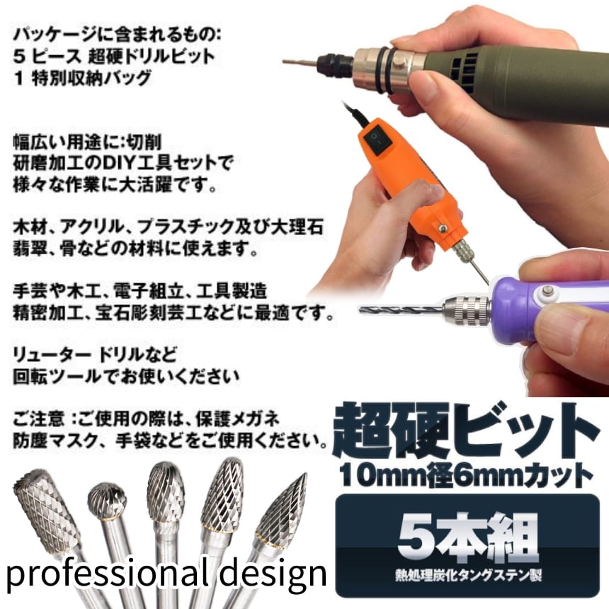 タングス鋼 研磨 ビット 5本 セット タングステン リューター 超硬 ドリルビット バリ 取り ルーター チップ 研磨ヘッド グラインダー 木材 アルミ TGBIT5