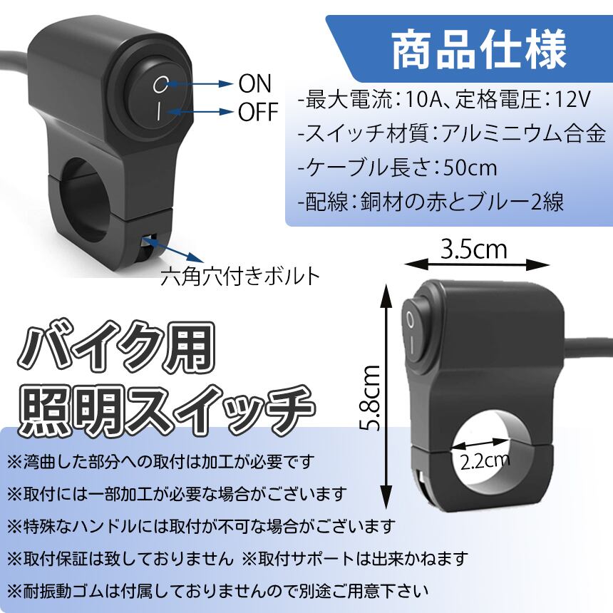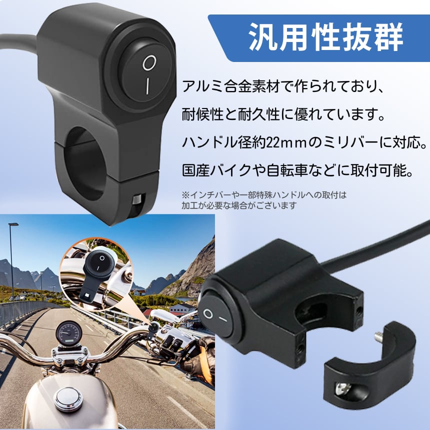 バイク スイッチ ライトスイッチ 防水 22mm ミリバー 対応 国産バイク 自転車 ON/OFF 12V 22mm ハンドル バー BIKESWI
