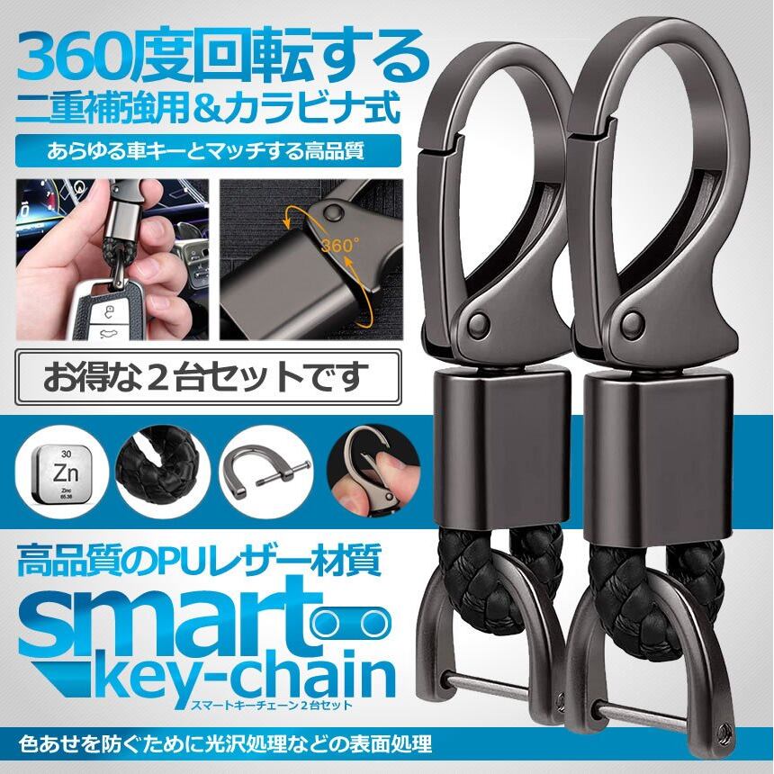 スマート キーリング 2個セット シンプル 金具 軽量 360度回転 車 鍵 キーホルダー おしゃれ キーチェーン バッグ PUレザー KICHAIN