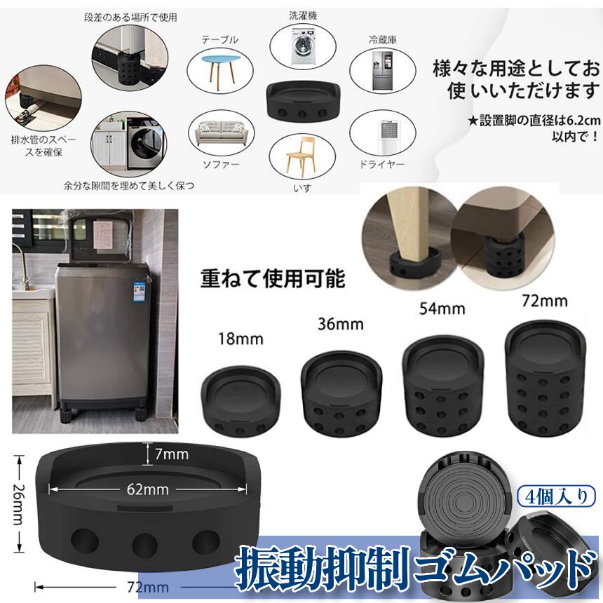 洗濯機 防振 ゴム 振動 吸収 騒音 対策 パッド 4個 セット かさ上げ 防音 マット 揺れ 防止 抑制 立体 構造 冷蔵庫 ソファー テーブル ベッド GOMYUREN