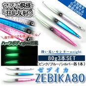 ジグ 3本セット 80g ゼブラホロ 乱反射 グロー メタルジグ 145mm 夜光 イカ ジギング SLJ スロージギング ZEBIKA80