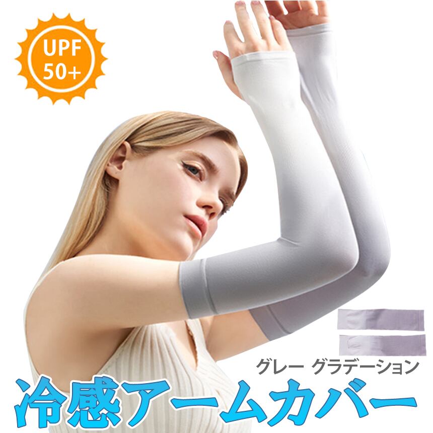 冷感 アームカバー グラデーション グレー ひんやり 日焼け防止 男女兼用 指なし 日焼け UVカット率99% GURADECOVER-GY