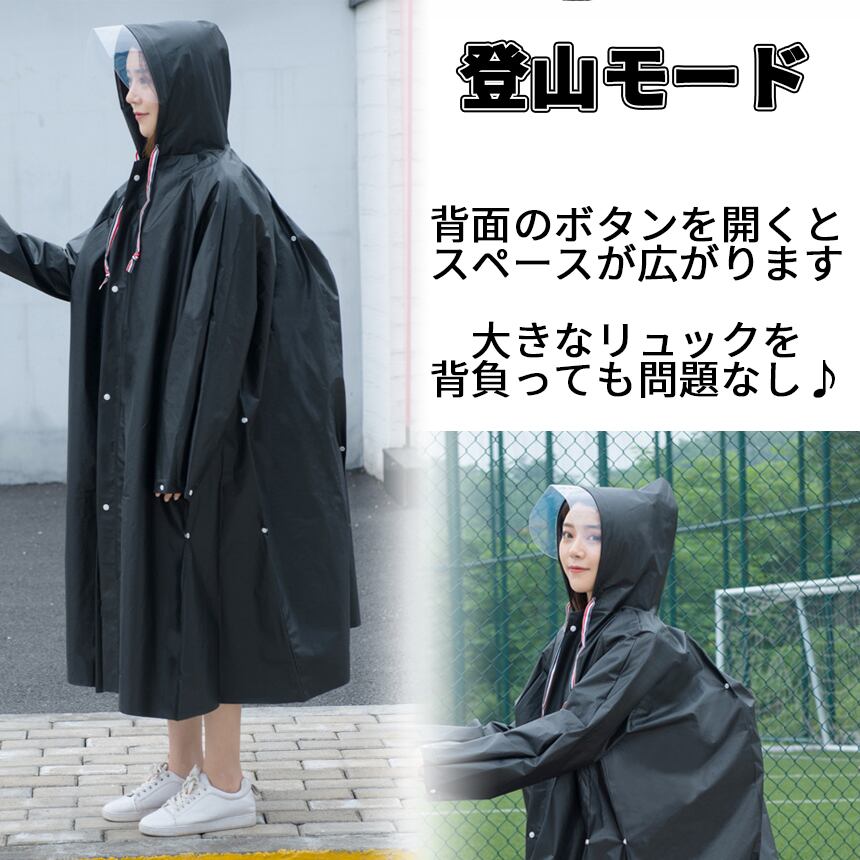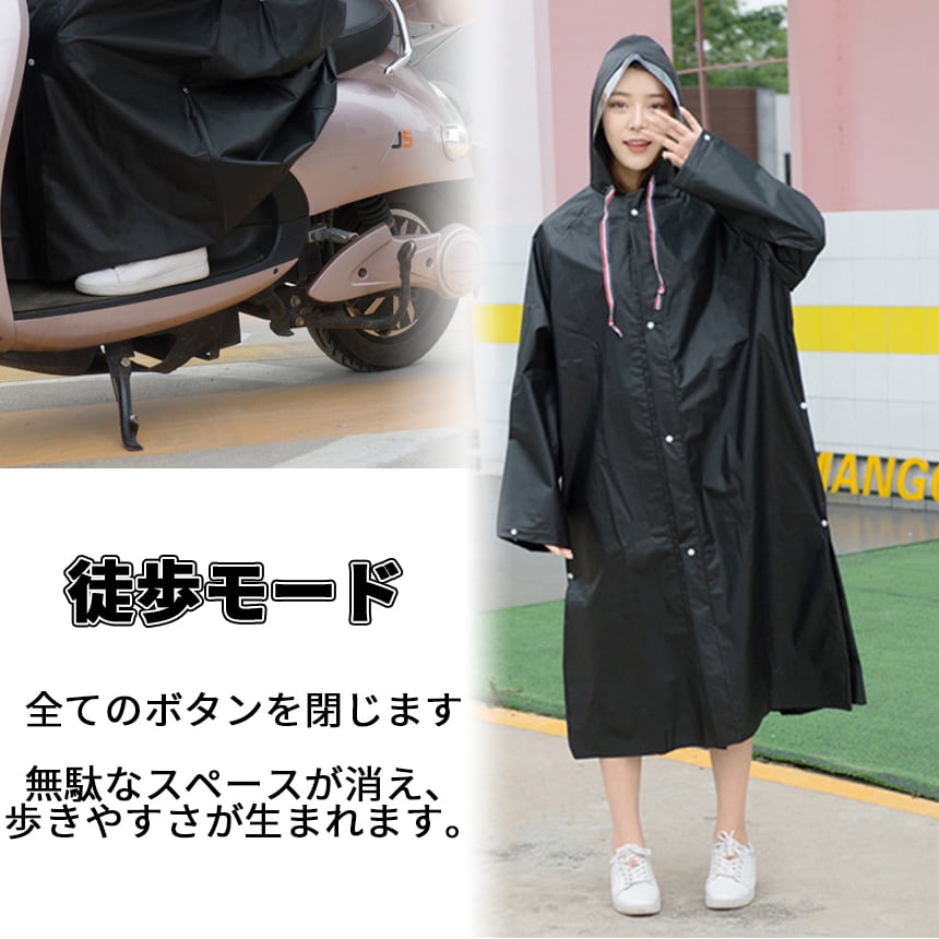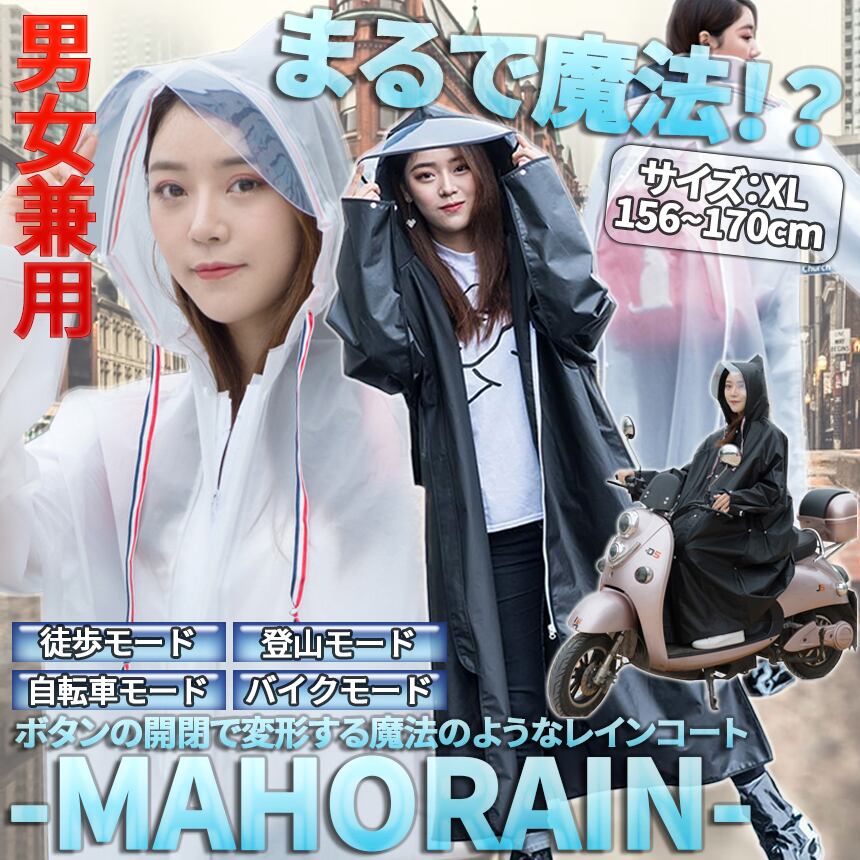 レインコート 自転車 バイク 徒歩 登山 防水 XL 男女 兼用 ブラック クリア レイン ウェア コート ロング フード 雨 かっぱ 合羽 通勤 通学 156-170cm MAHORAIN