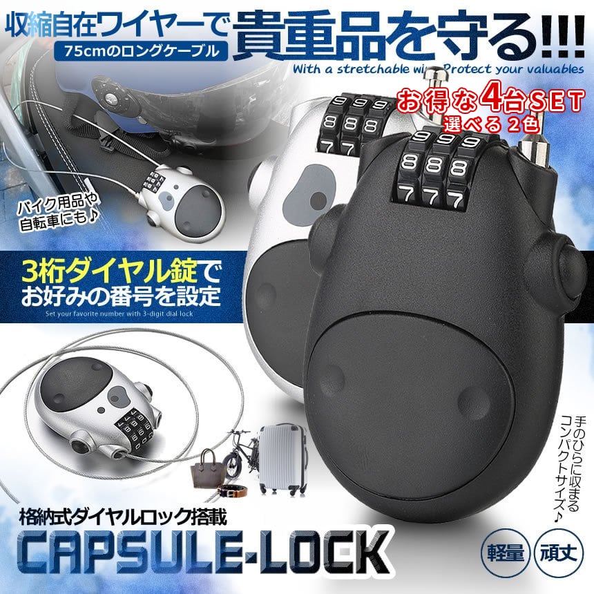 収縮 ワイヤー ダイヤルロック 4台入り ブラック シルバー 伸びるワイヤー ロック ダイヤル式 鍵 バイク 盗難防止 自転車 スーツケース 頑丈 防犯 KAGIWIRE-4SET