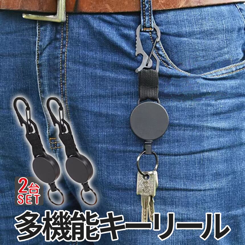 リール キーホルダー カラビナ 伸縮 60cm 2個 セット リール式 キーリング キーリール コードリール ドライバー 栓抜き 鍵 カギ 釣り マルチ ツール 2-KEYLILLE