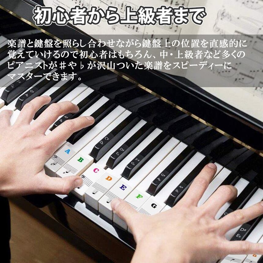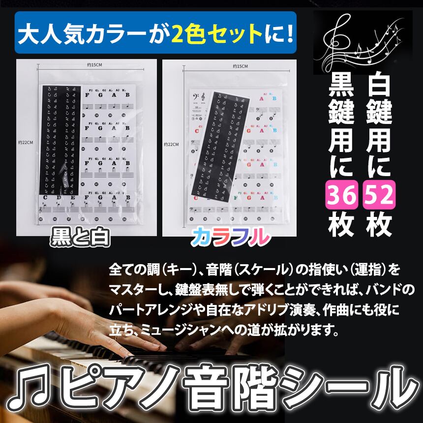 37 / 49 / 54 / 61 / 76 / 88 鍵盤 シール ピアノキーボード キー 2色組 音階 音符 初心者 練習 簡単 貼り付け 剥がせる ステッカー レッスン 教室 88PIASTE-SET