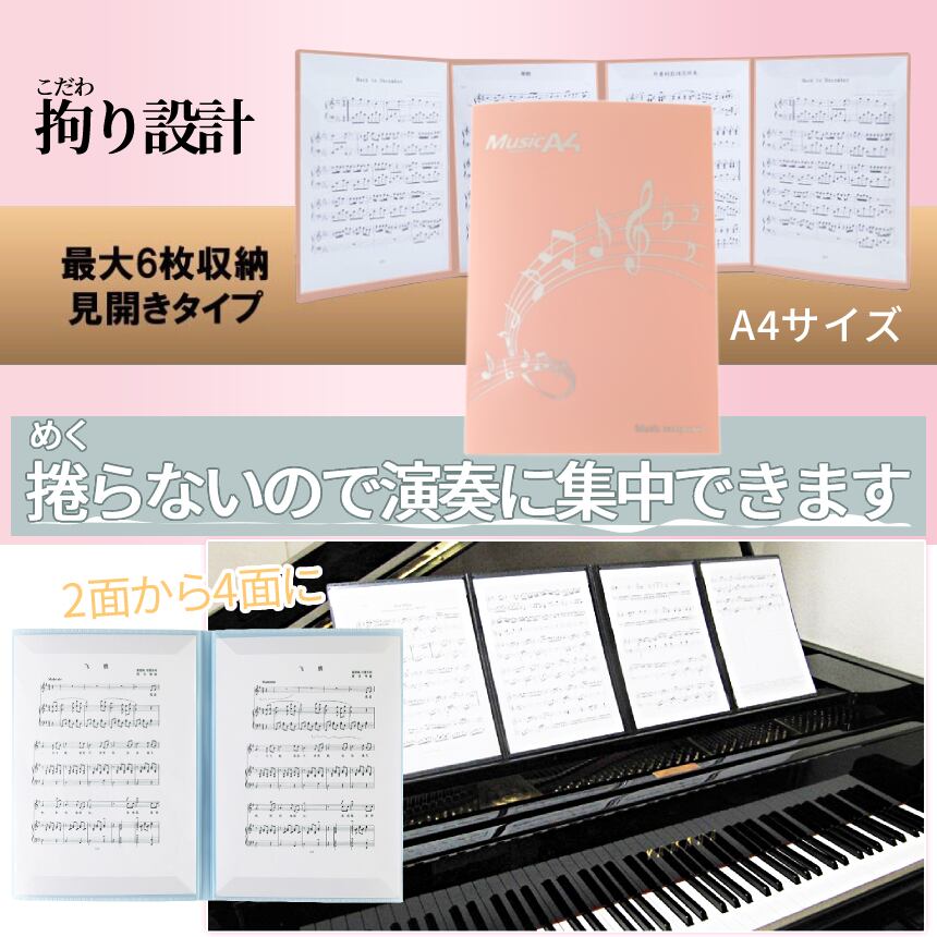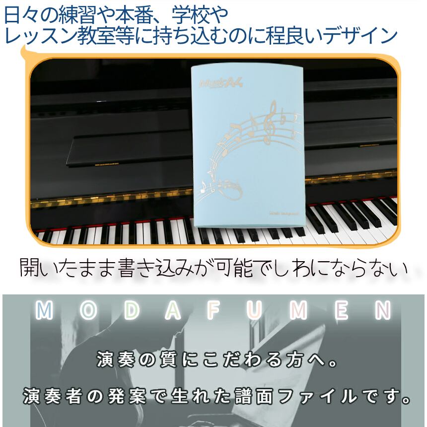 見開き 4面 楽譜 ファイル カバー 譜面 最大 6枚 収納 書き込み A4 カラー ピアノ 演奏 部活 吹奏楽 レッスン 練習 発表会 ライブ 弾き語り 路上 楽器 MODAFUMEN