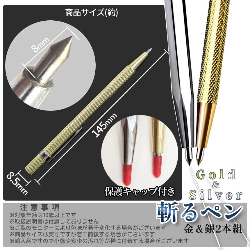 ペン型 ガラスカッター 2色セット 彫刻 ニードル 硝子 ガラス細工 ネーム彫刻 Gold Silver 斬るペン 切断 タイル DIY 切削 工具 レタリングペン GLASCPEN