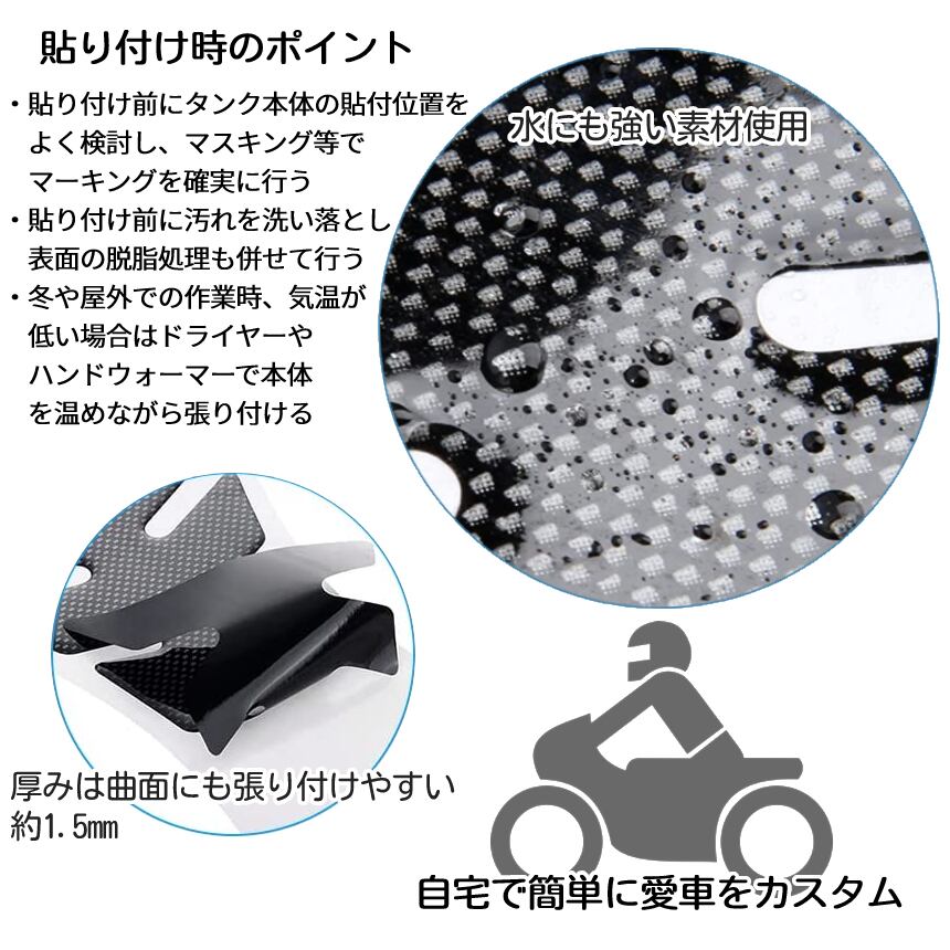 バイク タンク パッド 保護 ガード 傷 防止 シート ステッカー 2枚 セット 立体 3D カーボン調 汎用 タンクパッド スポタン プロテクター オートバイ 2-BTSHEET