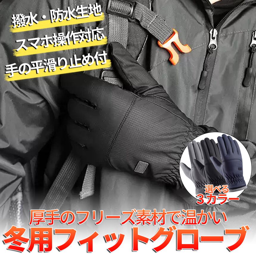 厚手 冬用 フィットグローブ 3色 防水手袋 裏起毛 防寒 手袋 グローブ スマホ対応 滑り止め付き ナイロン 防水 撥水 暖かい フリース タッチパネル FUYUFITG
