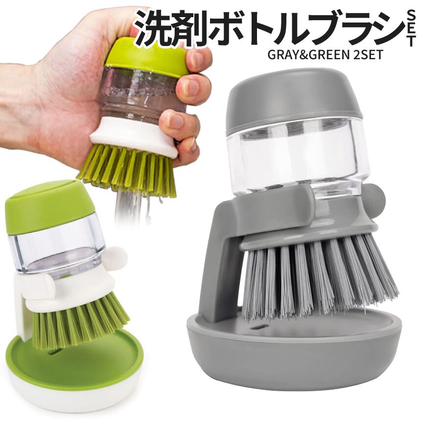洗剤 ボトル ブラシ 2色 セット キッチン 台所 掃除 ワンプッシュ 洗剤ボトル 一体型 大掃除 洗面台 シンク 鍋 フライパン バーベキュー 道具 洗う SEZABURA