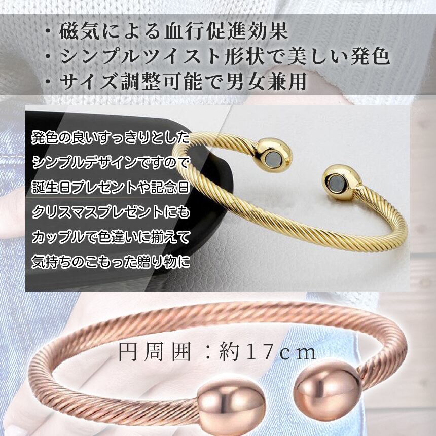 磁気ブレスレット バングル 血行促進 ツイスト シンプルデザイン サイズ調節可能 磁力 ブレスレット マグネット ゴールド シルバー ピンクゴールド ZIBRE