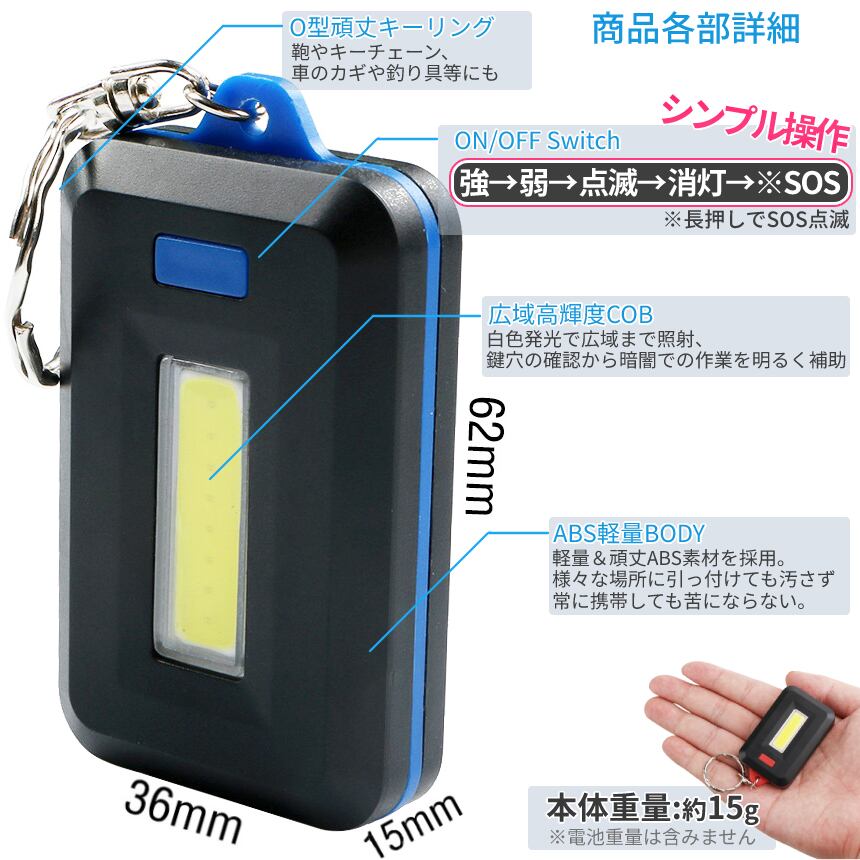 キーホルダー ミニライト 2個入り COBライト 懐中電灯 LED 照明 ライト キーホルダー マグネット 付き 便利 アウトドア ジョギング 釣具 照明 WANBORA-2SET