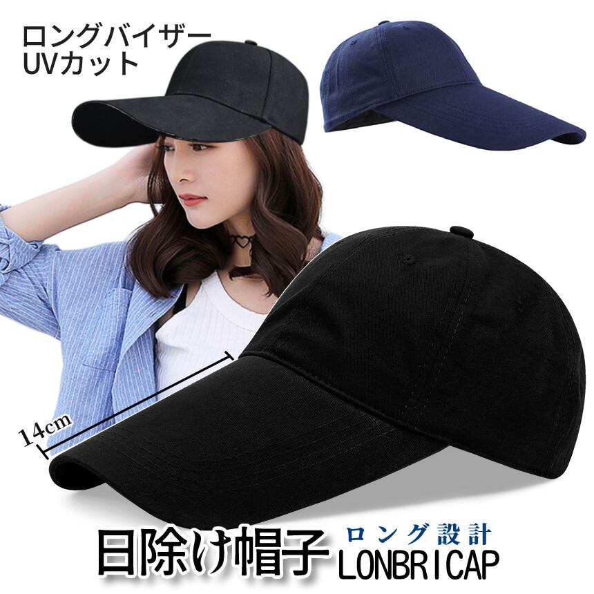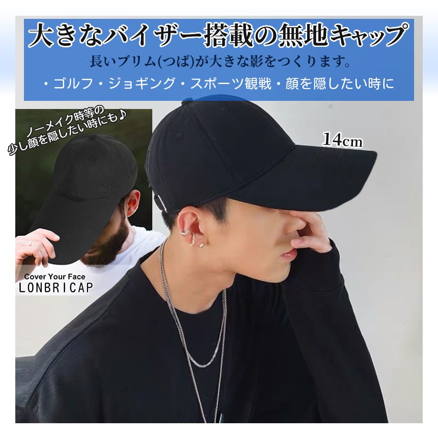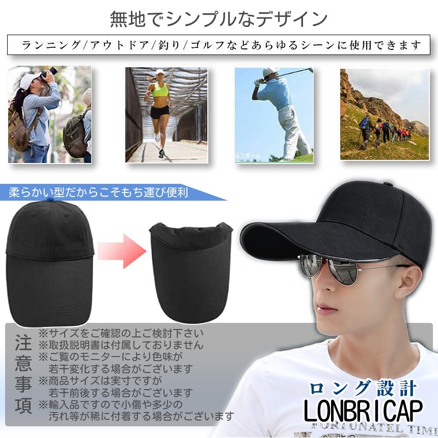 キャップ 帽子 ロング 14cm 黒 紺 男女兼用 無地 ロングバイザー ロングブリムキャップ 日除け UVカット ゴルフキャップ ジョギング ランニング 綿 LONBRICAP