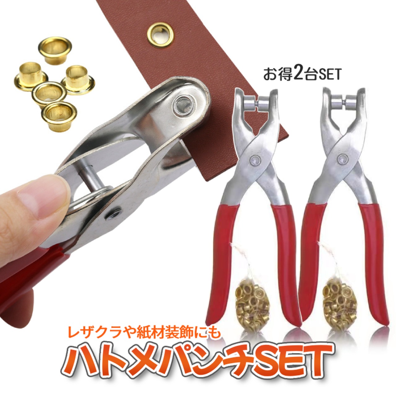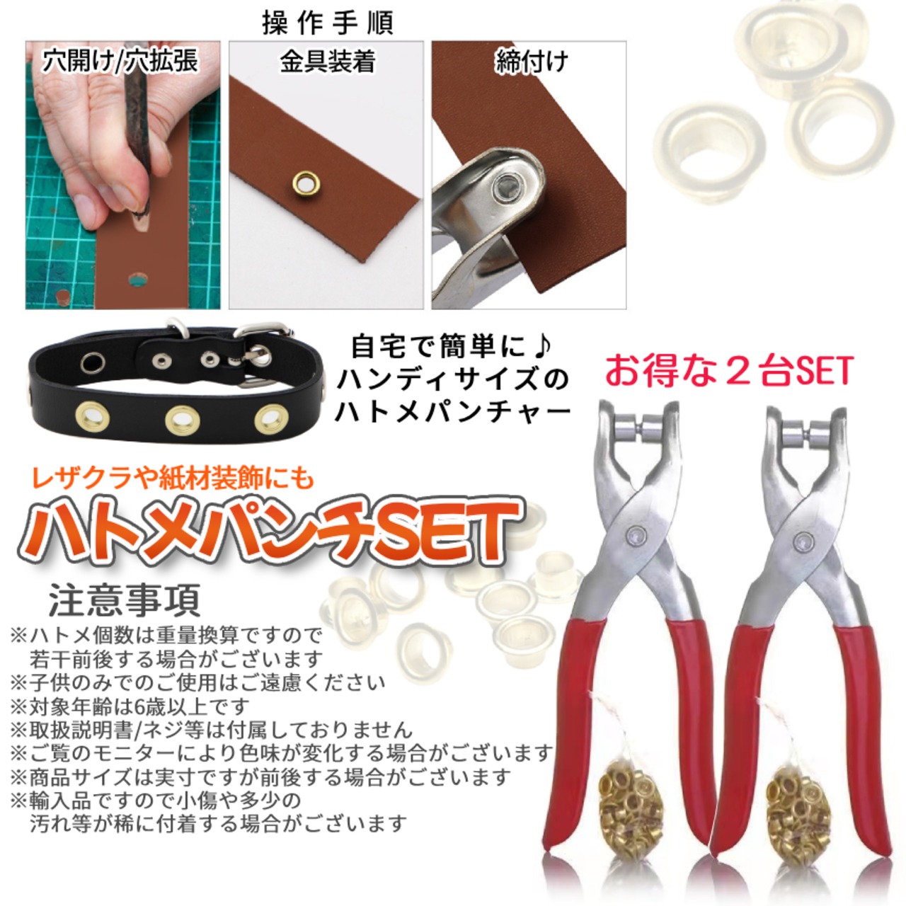 ハトメ パンチ 2台SET 200個付属 135mm ハトメパンチャー ホールパンチ ポンチ 金具 リベット レザークラフト ハンドメイド 2-TELIBE
