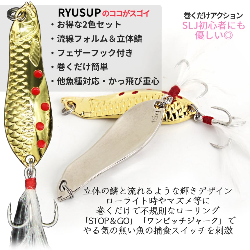 釣り用スプーン 2色SET 20g 金 銀 立体鱗 肉厚 ジグ SLJ 巻くだけ かっ飛びスプーン ソルト対応 疑似餌 小魚 釣り フィッシング シーバス 鮃 鯛 RYUSUP20